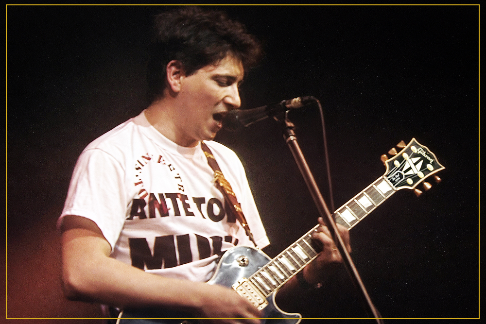 Miguel Costas, guitarra solista de Siniestro Total, nunha actuación na TVG. 31/12/1986.