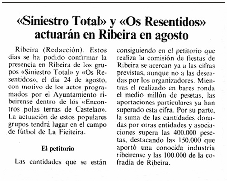 Aquela noite do verán do ‘86 foi moito máis ca unha actuación memorable. Foi un momento histórico para toda Ribeira, e unha desas veladas que explican por que Siniestro Total e Os Resentidos forman parte esencial da memoria musical de toda unha época e todo un país.